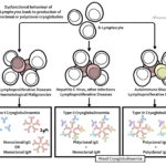 Cryoglobulins: Immunoglobulins that precipitate at <37 °C and dissolve on rewarming; quantified as cryocrit (%) and typed by immunofixation into Brouet types I–III. Mixed cryoglobulinaemia: Type II (monoclonal IgM-RF + polyclonal IgG) or Type III (polyclonal IgM-RF + polyclonal IgG); RF activity drives immune complex formation. Type I cryoglobulinaemia: Monoclonal immunoglobulin (IgM or IgG) from a haematologic clone; causes ischemia/hyperviscosity more than vasculitis. Membranoproliferative glomerulonephritis (MPGN): Immune-complex GN typical of mixed CV renal disease.