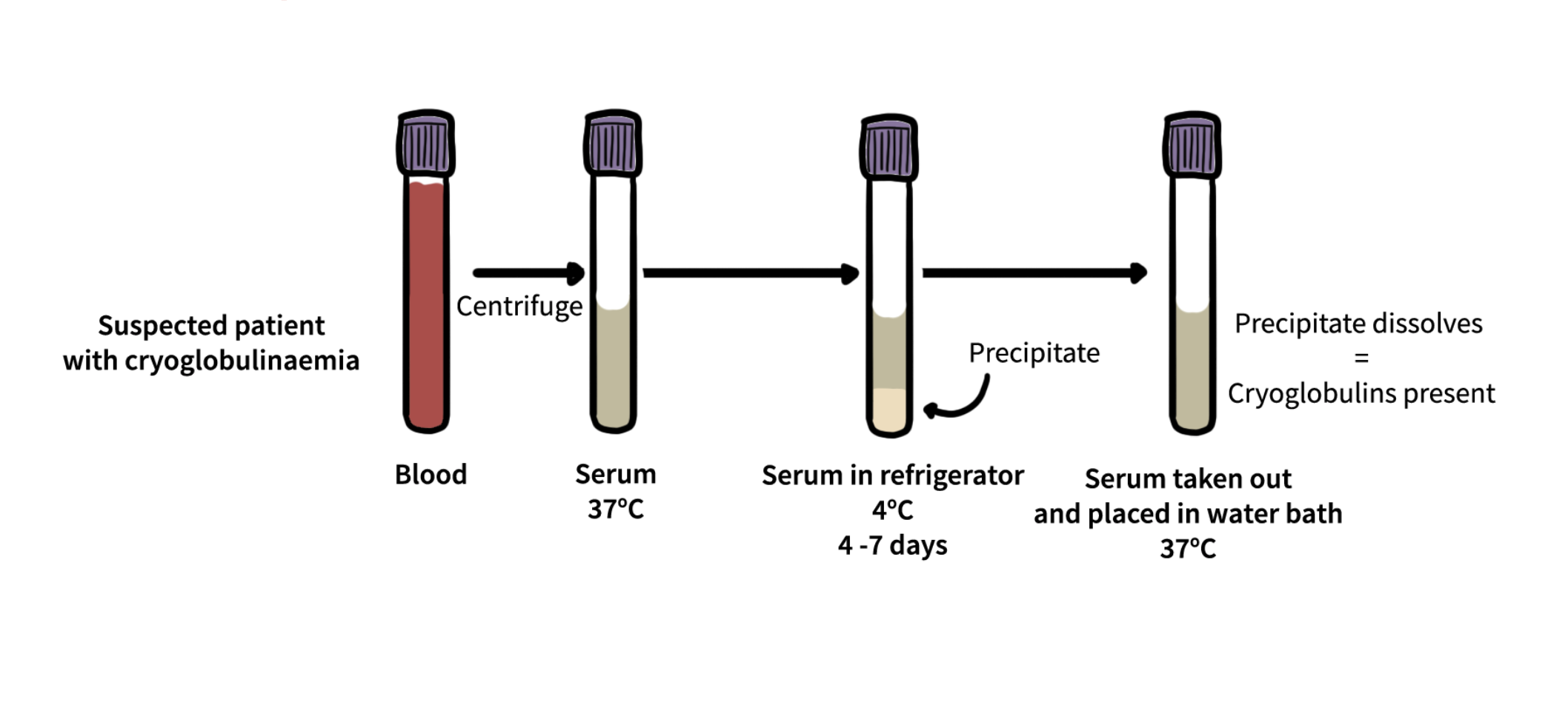 Always keep blood samples at 37 °C until serum separation to avoid false-negative cryoglobulin results.