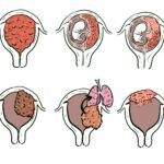 Hydatidiform moles are part of a group of diseases falling under gestational trophoblastic disease. A hydatidiform mole refers to the abnormal growth of trophoblastic cells in the placenta, resulting in edematous placental villi that form hydatidiform structures. It is classified as either partial or complete, causing either abnormal foetal development (resulting in foetal demise) or the prevention of foetal development completely, respectively. It is often identified within the first trimester of pregnancy, usually ending in miscarriage. Key features of hydatidiform moles may include first-trimester PV bleeding and severe nausea and vomiting.