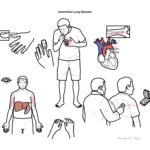 Interstitial Lung Disease: Includes a diverse group of respiratory conditions characterised by inflammation and fibrosis of the interstitium. Worsening hypoxia and respiratory failure may develop with disease progression. The disease is considered a restrictive lung disease