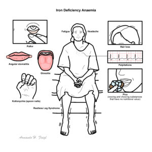 In the clinical setting, iron deficiency is the most common cause of anaemia. Iron Deficiency is lack of iron in the body resulting from inadequate iron intake, increased iron loss and increased iron demand which can lead to anaemia. Iron is an integral part of haemoglobin the oxygen carrying protein. Without iron, oxygen is unable to be carried resulting in anaemia.