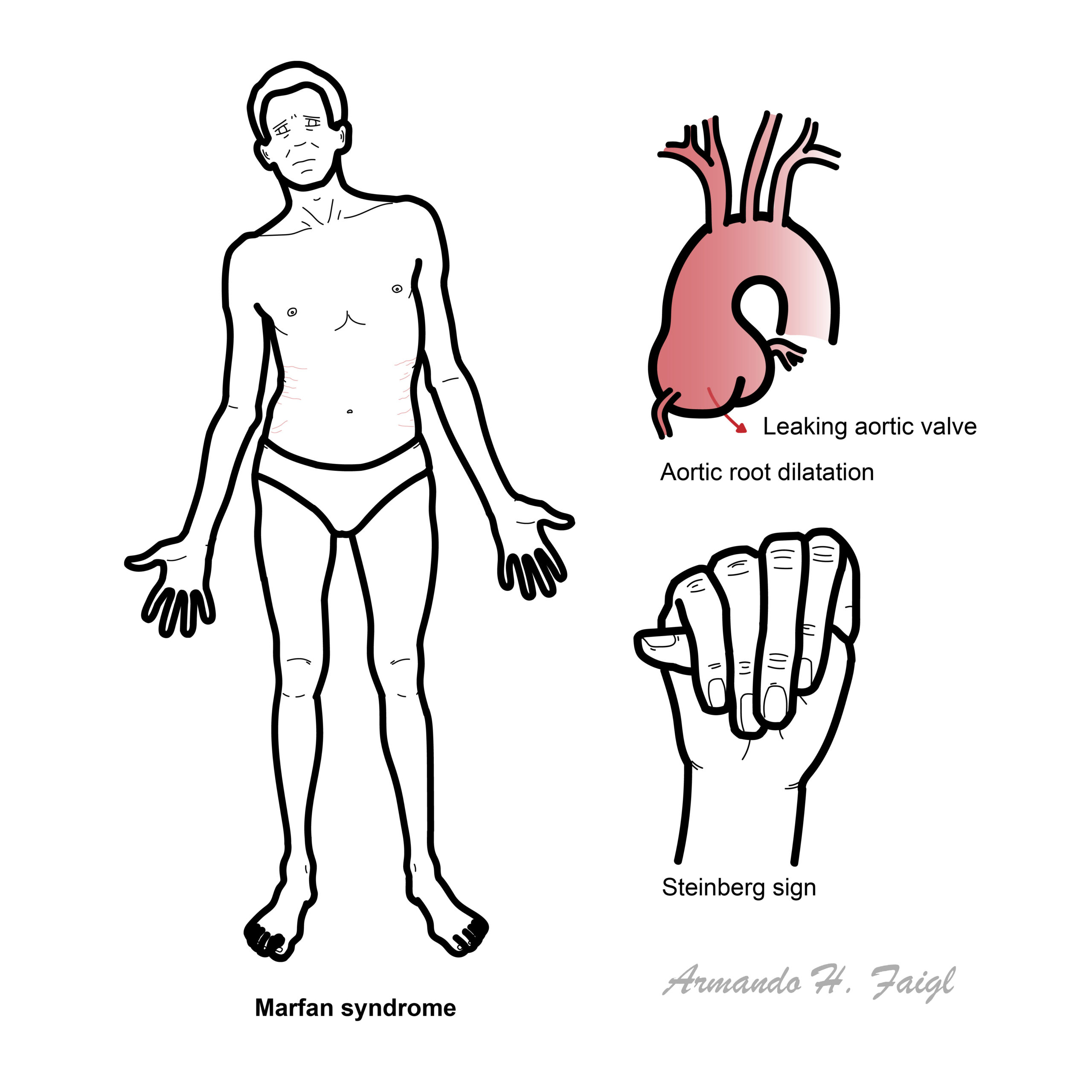 Marfan’s Syndrome is one of the most common inherited disorders of connective tissue. Marfan syndrome is a hereditary disease affecting connective tissues in the body, resulting in symptoms such as aortic dissection and musculoskeletal deformities. However, no family history of Marfan’s does not exclude the diagnosis as 30% can occur through gene mutation.