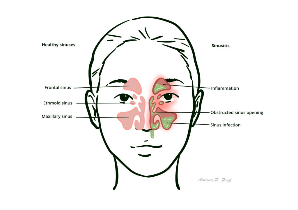 Sinusitis: Inflammation of the sinuses (usually a result of rhinitis)