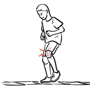 Transient synovitis: or Irritable hip, is a common disorder of childhood which presents with the acute onset of hip pain and a limp that gradually resolves. The history is one of an acute onset of hip pain and a limp, followed by knee pain and inability to weight bear. On examination, the affected leg tends to be held in the position of greatest ease, typically, one of flexion, abduction and slight external rotation.